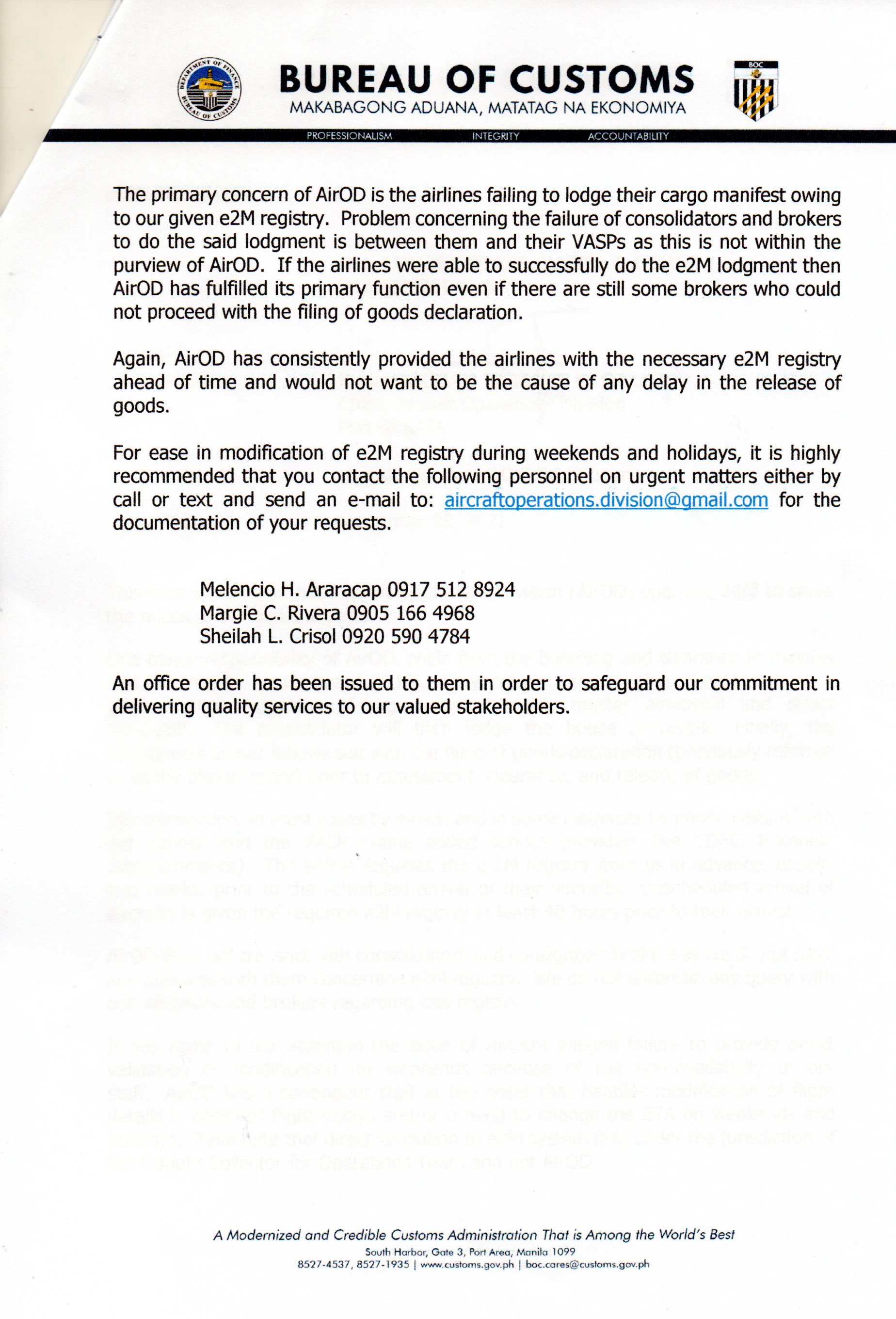 | Memo to ATI and ICTSI re dual processing |